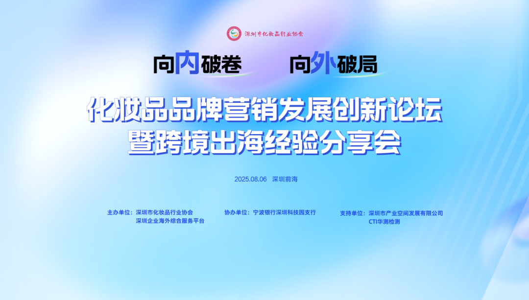2025年8月6日下午,由深圳市化妆品行业协会、深圳企业海外综合服务平台联合主办,宁波银行科技园支行协办,特区建工、CTI华测检测支持的“2025化妆品品牌营销发展创新论坛暨跨境出海经验分享会”在深圳前海国际人才港成功举行。